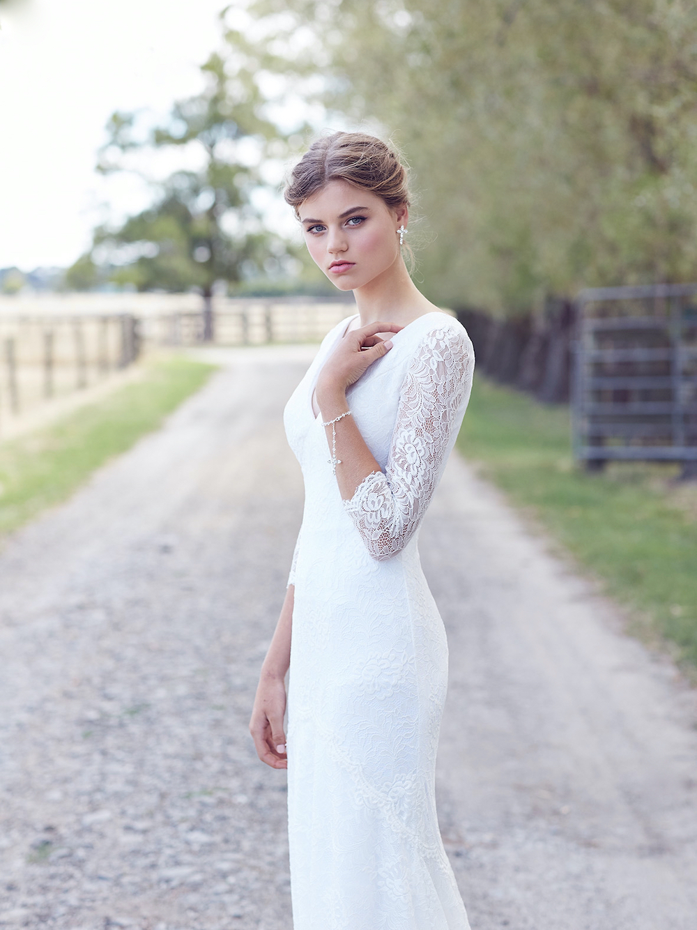 The Broome is a beautifully fitted lace wedding dress inspired by relaxed coastal weddings. Named after one of Australia’s most stunning beaches, it’s the perfect choice for a beach, rustic or vintage celebration.