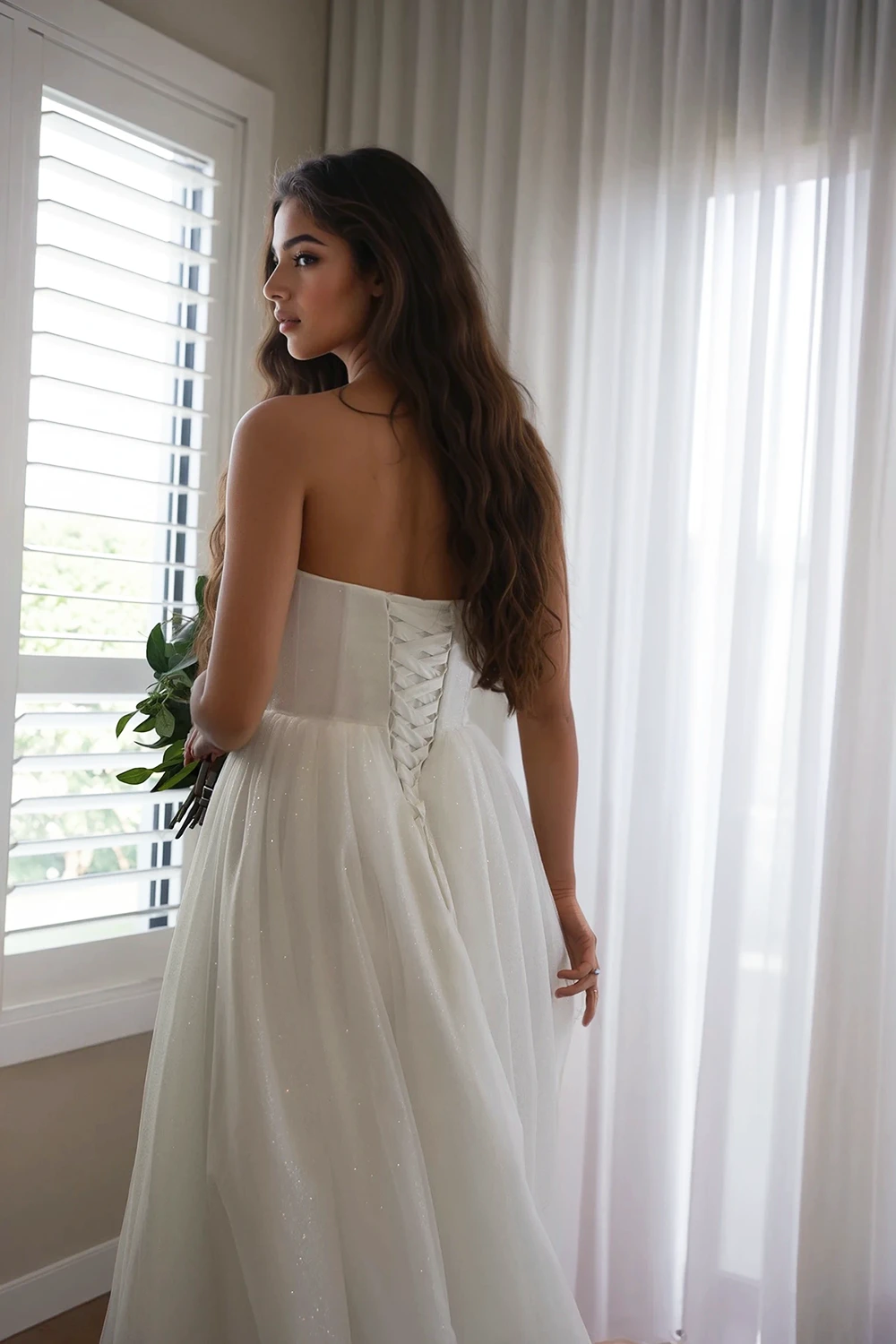 Elevate your bridal look by pairing Colette with a shimmering lace veil or a regal tiara for that extra touch of glamour.