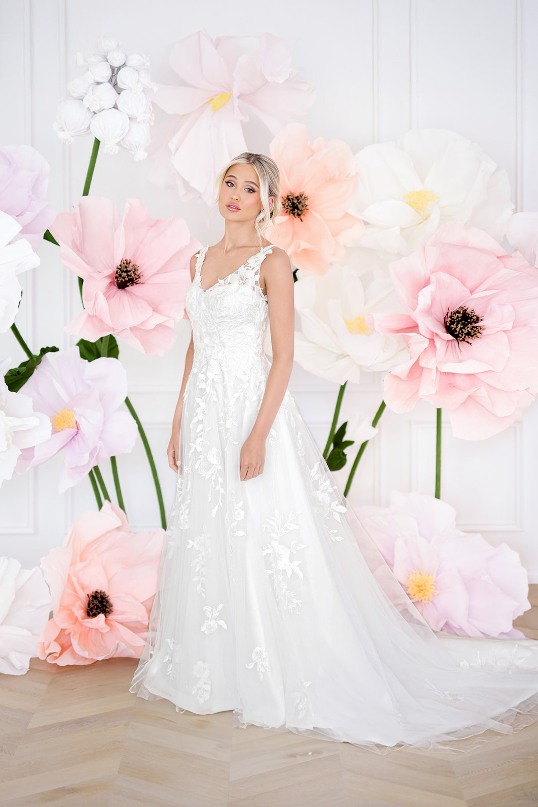 Flowing layers of airy tulle cascade into a full skirt that feels weightless yet wonderfully dramatic, finishing with an elegant 20-inch train that glides effortlessly behind you. Designed for brides who want to feel unforgettable, Dream can be custom ordered in over 30 breathtaking colours — from soft pastels to bold statement shades. Romantic, radiant, and undeniably enchanting, Dream is the dress you’ve been waiting for.