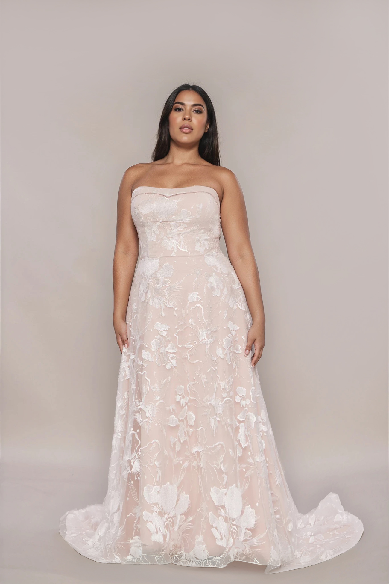 One dress so many options, from strapless to off the shoulder or even a ruffle sleeve. Choose from ivory or nude colour for this flowing floral frock. Designed in Melbourne from Leah S Designs. Comes standard in off the shoulder and seperate sleeves can be purchased separately.
