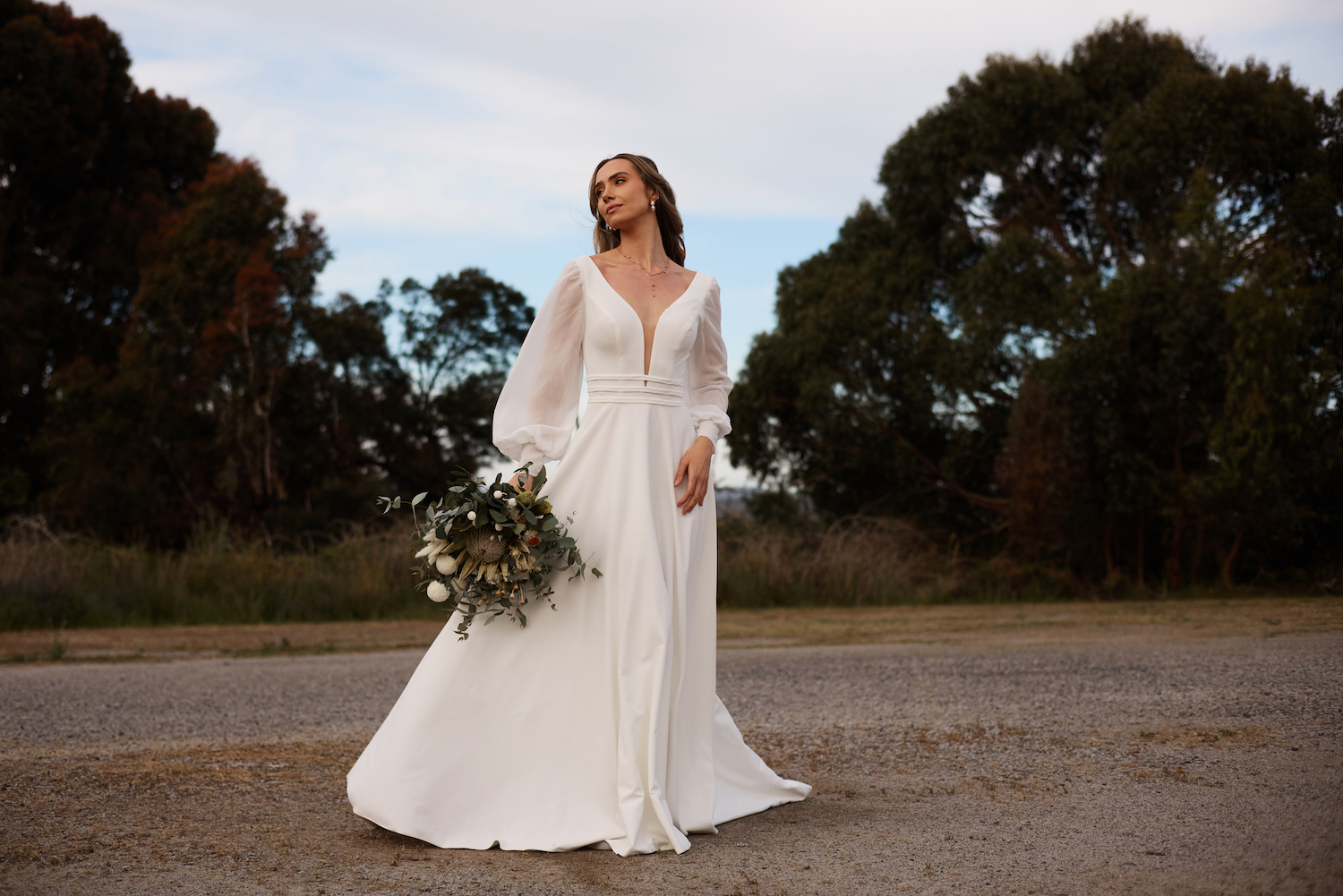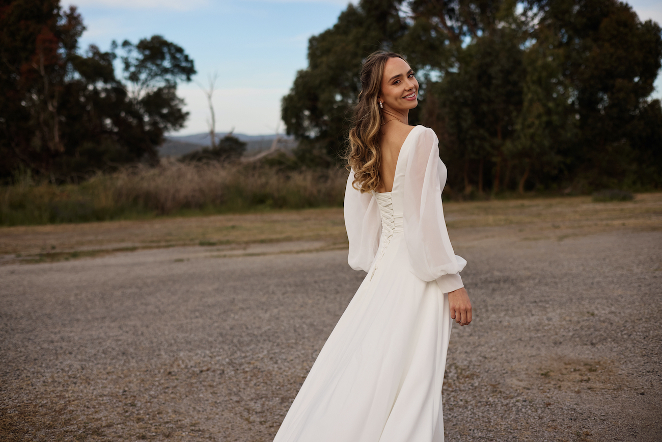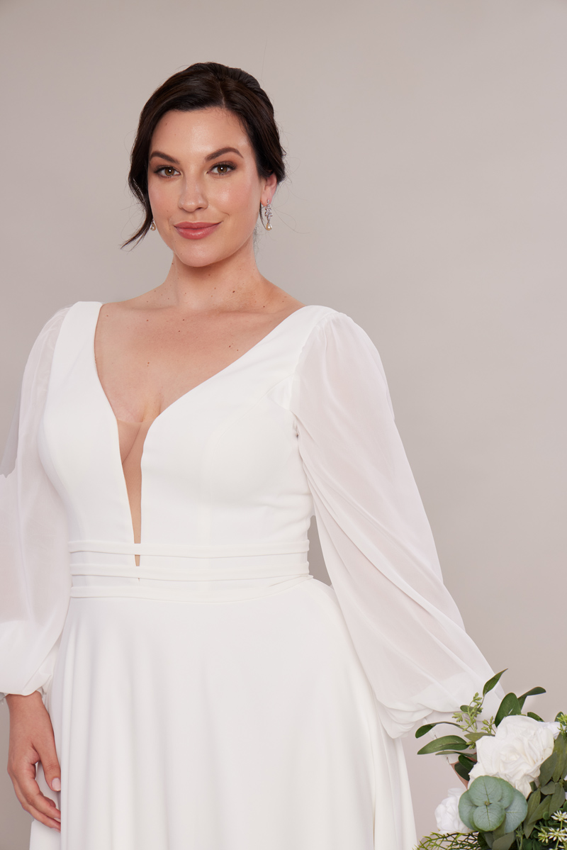 Rita is the kind of crepe wedding gown with long sleeves that makes you feel like you’ve stepped straight out of a modern-day love story. Crafted from buttery-soft crepe, she’s designed to skim your shape in the most feel good way, you feel effortlessly elegant from the moment you put her on. The long chiffon bishop sleeves, finished with buttoned cuffs, add just the right touch of romance.